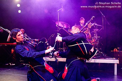 Den zweiten Teil der Show starteten sie dann so, wie sie den ersten beendet hatten. Nach „Long Way To The Top“ stand dann mit „The Lost“ eine Eigenkomposition auf dem Programm, die hervorragend ins Set passte. Überhaupt war die Auswahl der Stücke sehr gelungen. Durch ihren eigenen Stil und die Tatsache, dass sie teilweise Intros eingebaut hatten bzw. die Songs durch die Instrumentierung so fremdartig klang, kam man nicht immer sofort darauf, welches Lied sie den nun spielten. So erging es mir beispielsweise bei „You’re The Voice“, dem Beatlesklassiker „Hey Jude“ und „Baba O’Riley“ von The Who. Und auch das macht den Reiz dieser tollen Truppe aus.