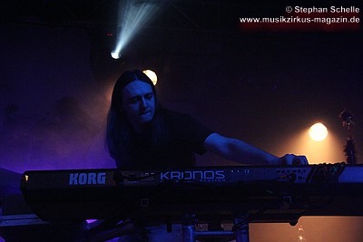 hinter seinen Keyboards ab. Man hatte das Gefühl, als wolle er seine