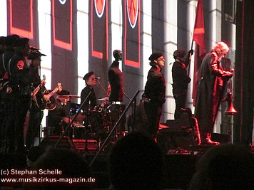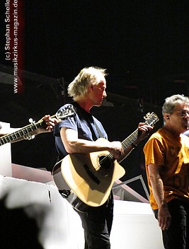 Es folgte mit „Run Like Hell“, der rockigste Song des Albums. Und nach „The Trial“ wurde dann die Mauer, mit einem wuchtigen Sound untermalt, eingerissen. Wow, welche Dramatik. Den letzten Song „Outside The Wall“ präsentierte die komplette Band mit Akustikinstrumenten (darunter Trompete, Ukulele, Akustikgitarre, Banjo, Perkussion) direkt vor dem „Schutthaufen“ der eingestürzten Mauer.