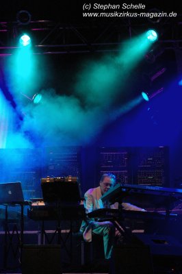 Publikum, was Klaus, der vor seiner Sequenzerburg und hinter seinen