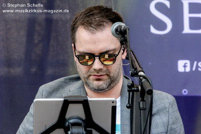 hinter der Bühne und stieg dort schon mit seiner Gesangseinlage ein.