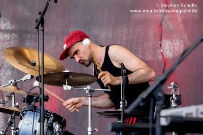 Keyboards und Gitarren, er liefert sich auch mit Schlagzeuger Mesut Gürsoy