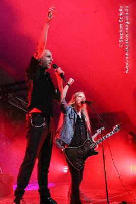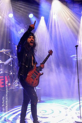 den Saiteninstrumenten zigfach die Haare fliegen und posten um die Wette.