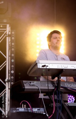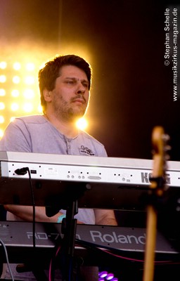 Volker an seinen Keyboards mit Xylophon artigen Sounds für eine jazzige