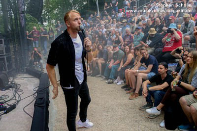 Kontakt zum Publikum indem er von der Bühne in die ersten Ränge ging und