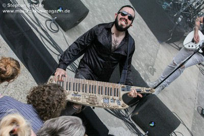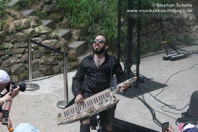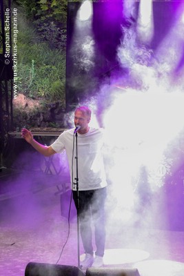 Er schnallte sich ein tragbares Keyboard um und kam in die Bühnenmitte.