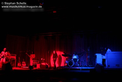 Vorhänge begrenzten die Bühne, auf der alle Instrumente in weißen Farben