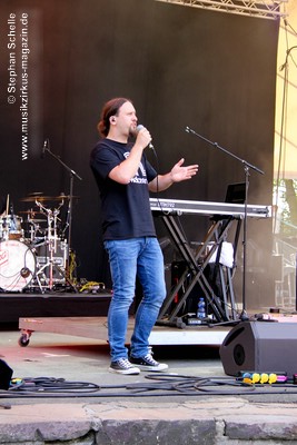 Gabriel Coverband Secret World am Mikro steht, ins LineUp geholt.