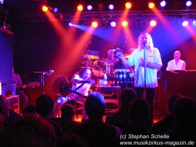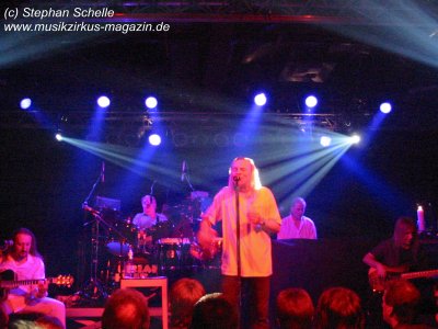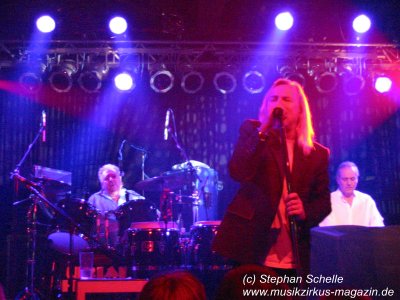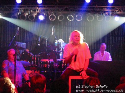 Der kleinste Konzertsaal während dieser Tour bot eine recht kleine Bühne, auf der die Musiker gerade Platz hatten. Und nach gut einer halben Stunde Umbaupause - ich frag mich heute noch, warum das so lange gedauert hat - kamen die fünf Engländer, an denen auch der Zahn der Zeit nicht vorübergegangen ist ans Gerät. Gleich war die Stimmung in dieser, einer Sauna gleichenden Halle, die komplett ausverkauft war, kurz vor dem Siedepunkt.