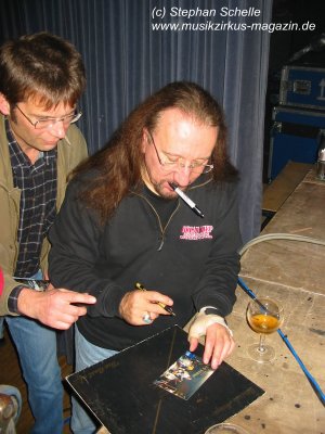 Klasse fand ich auch, dass die Stars von früher sich nicht zu schade sind, noch zu den Zuschauern zu kommen um Autogramme zu schreiben. Zwar ließen sie sich etwas Zeit um sich nach dem Schweiß treibenden Auftritt etwas frisch zu machen, aber gelohnt hat sich das warten allemal. Uriah Heep, eine Band die es noch voll drauf hat.