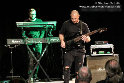 Die Band begann ihr Set mit „Dancing Generation“, einem Stück von ihrem ersten Album „So Close & Yet So Far Away“. Mit Pianoschlägen begann dieser Track der dann um kräftige Keyboardsounds ergänzt wurde. Das klang zum einen von der Melodie proggig und nach den 70’er Jahren, war aber mit modernen Klangfarben versehen. Das hatte was Magisches und war eingängig und zugleich ungewöhnlich. Nach einigen Momenten wurde es dann druckvoll, denn Bass und Schlagzeug sorgten nun für einen heavy Groove. Ein gelungener Mix aus sanfter Melodie und Härte.