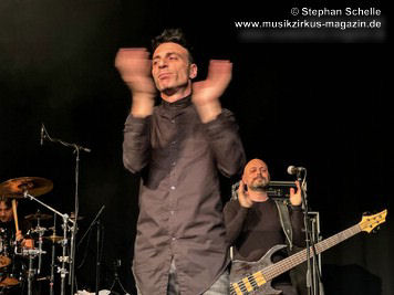 Dem schlossen sich dann vier Stücke vom aktuellen Album „Conundrum“ an. Neoproggig startete das Stück „In Pieces“ mit melodischem Gesang. Dann kamen beatleske Sounds (zu „Sgt. Pepper“-Zeiten) auf. Vor allem mehrstimmiger Gesang bereicherte den Track, der härter als die Studioversion klang.
