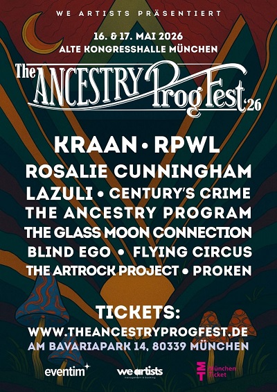 Flying Circus: Sonntag (14:30 – 15:30) Flying Circus gelten derzeit als heißester Geheimtipp im deutschen Progressive Rock. 2026 präsentieren sie ihr neues Album „The Eternal Moment“ live – und vieles spricht dafür, dass der endgültige Durchbruch bevorsteht. Bereits ihre letzten beiden Alben schafften es in die deutschen Rock-/Metal-Charts, Fachmagazine und der Deutschlandfunk zeigte sich begeistert, und renommierte Festivals wie Burg Herzberg oder Night Of The Prog haben sie gebucht. Mit einer einzigartigen Mischung aus Hard Rock, Jazz, Folk und Funk und einer markanten Live-Performance bleiben Flying Circus unverwechselbar – und absolut sehenswert. Beim Ancestry Prog Fest 2026 bringen sie ihre ganze Live-Power auf die Bühne der Alten Kongresshalle. (TAP)