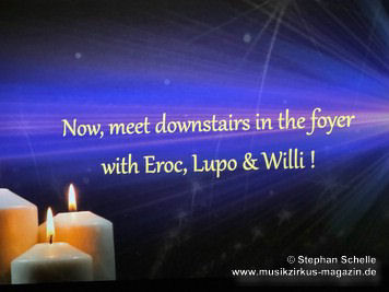 dann Eroc, Lupo und Willi an den Bühnenrand und begrüßten die Anwesenden.