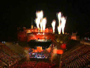 Edinburgh vor der Kulisse der alten Burg aufgenommen. Neben den üblichen Musikern wirkt