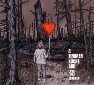 Bad - Lasst Liebe regieren Die Rock-Pop-Punker-Band 4 Zimmer Küche Bad, kurz 4ZKB, stammen aus Limburg/Weilburg. Am 02.04.2021 erscheint ihr zweites Album unter dem Titel „Lasst Liebe regieren“. Das Album des Quartetts, bestehend aus Matthias Krey (Gesang), Tobias Biedert (Gitarre, Gesang), Oliver Best (Bass) und Manuel Schneider (Schlagzeug), erscheint als vierseitiges Digipack mit zwölfseitigem Booklet. Die Covergestaltung ist schon recht düster mit einem sterbenden Wald (das kennen wir ja jetzt leider schon aus den letzten beiden Sommern) und einem Kind mit einem roten, herzförmigen Luftballon. |