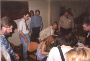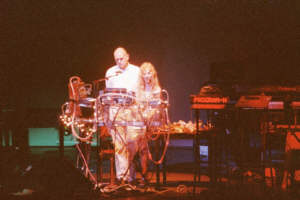 Zum Abschluss kam dann wieder Hans Joachim Roedelius auf die Bühne um beim letzten Titel des Konzertes mitzuspielen. Die drei Musiker wurden mit einem begeisterten Beifall vom Publikum verabschiedet. Nach dem gut 1 ½ Stunden dauernden Konzert kamen Alquimia und Joachim Roedelius dann noch zum Stand des Labels bsc-music, an dem sie den Fans gut eine ¾ Stunde Autogramme schrieben.
