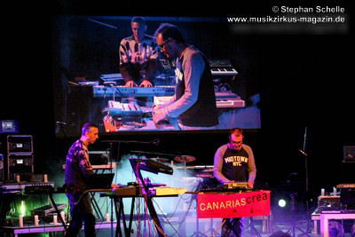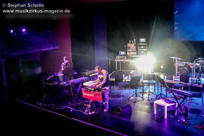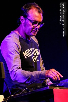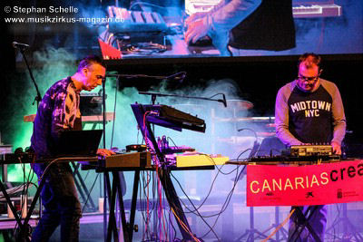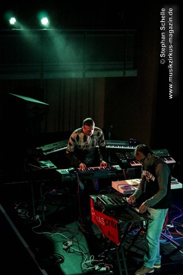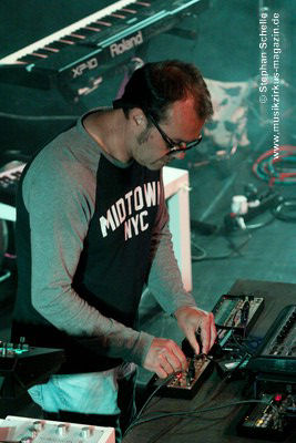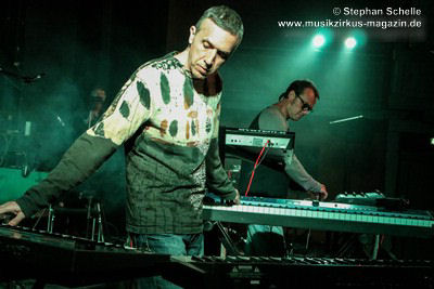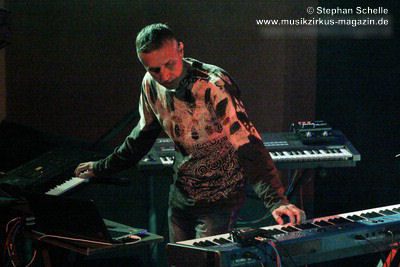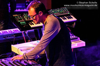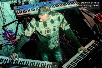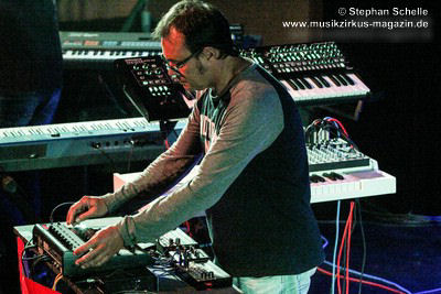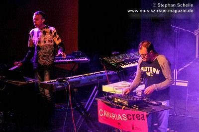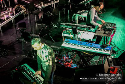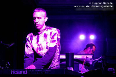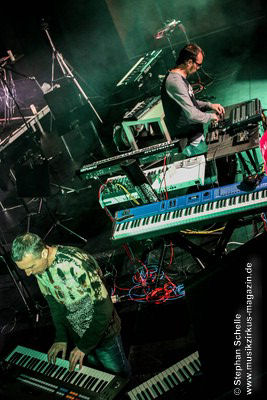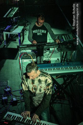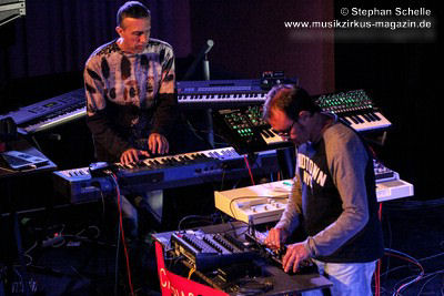 Ungewöhnliche Sounds, die manchmal von ihrer Spielart etwas härter und schroff klangen, wehten ein ums andere Mal durch den Saal um dann nach einigen Minuten in Harmonielinien zu transformieren. Dann wiederum boten sie herrliche Mellotronsounds und Synthiechöre, die an die seligen 70’er Jahre erinnerten. Genau diese Mischung machte ihren Gig aus. Besonders gut gefielen mir die Passagen, in denen sie den Sequenzer anschalteten, der einen ordentlichen Rhythmus in den Saal pumpte. Zum Abschluss ihres Gigs hatten die beiden als Zugabe noch eine Improvisation für das Publikum bereit.