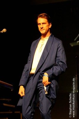 In Seemanns bzw. Kapitänskostümen wurden dann BAR (Band am Rhein) angesagt. Der Grund: Lucas Croon (Stabil Elite) und Christina Irrgang kommen aus Düsseldorf, was auch den Bandnamen erklärt. Ihren Kompositionen erinnern an Bands der Marke Prefab Sprout, Dream Academy, Propaganda (insbesondere der Gesang von Christina) und Bryan Ferry erinnern. Stilistisch waren die Stücke sehr stark an der Popmusik der 80’er Jahre wie New Romantic, Wave oder Electropop angelehnt. Einige Sounds und Klangfarben kennt man so auch von z. B. ABC, allerdings nicht ganz so fett, sondern etwas reduzierter. Das zeigte sich gleich schon im Opener.