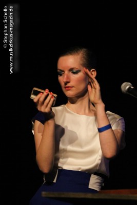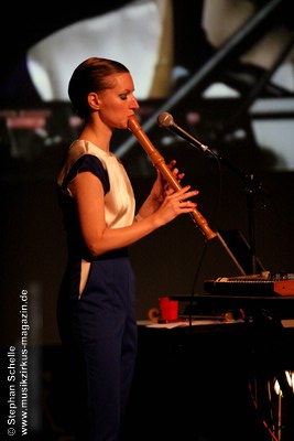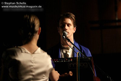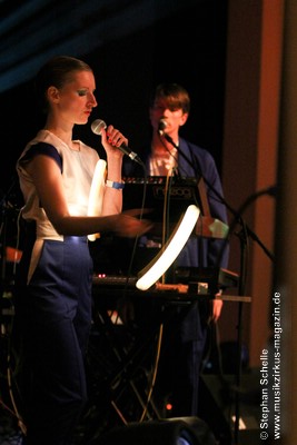 Auch wenn der erste Song des Sets „Adios“ hieß, so starteten BAR doch gleich mit einem mitreißenden, tanzbaren Stück in ihr Set. Das erste Stück des recht elektronischen Duos wurde um eine Blockflöte, die von Christina gespielt wurde ergänzt, was ganz hervorragend zu dem Electropop-Sound passte. Wie dieser erste Song schon zeigte, war die Musik von BAR hoch melodisch mit sehr eingängigen Refrains und Melodien gespickt. Während Christinas Stimme an einigen Stellen recht zaghaft wirkte, kam Lucas Gesangspart sehr geschmeidig rüber.