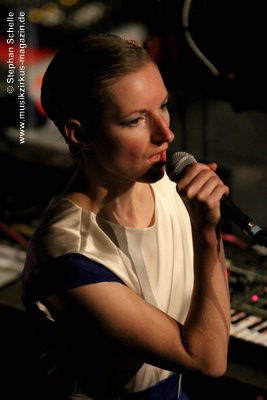 Das Intro im zweiten Stück „White Noise“ hätte auch gut von einem Act aus der traditionellen Elektronik stammen können. Sobald aber der Rhythmus einsetzte und Christina ihren Text ins Mikro hauchte, waren BAR klar im atmosphärisch/romantischen Pop verortet.