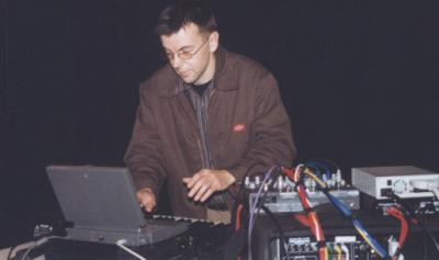 Musiker vor einem Notebook, man konnte nicht erkennen ob er überhaupt ein Instrument