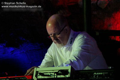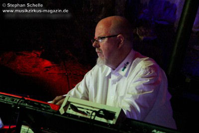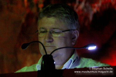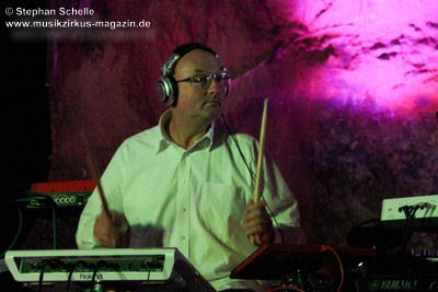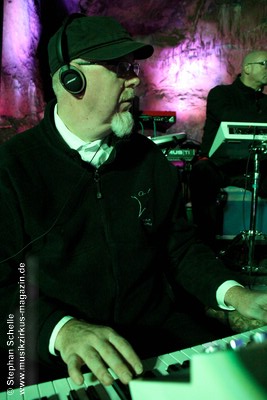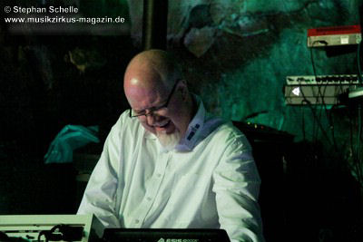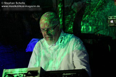 Diese Zugabe war nicht ganz ungeplant, denn Detlef Keller hatte im Vorfeld einige Grundsequenzen erstellt, die er Pyramid Peak schon vorher zur Verfügung gestellt hatte und für die die Leverkusener dann schon mal Sounds ausgesucht hatten. Auf dieser Grundlage improvisierten die sechs Musiker was das Zeug hielt und so waren die Stile beider Formationen an einigen Stellen klar herauszuhören. Eine Premiere auch für die Musiker, die vorher noch nicht zusammengespielt hatten. Das kam so gut beim Publikum an, dass im Nachgang Stimmen zu einer Wiederholung laut wurden.