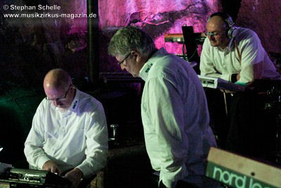 Das Konzert des niederländisch/deutschen Trios begann damit, dass Mario einige Synthiesounds erzeugte und Detlef Keller und Bas Broekhuis ganz neugierig zu ihm rüber sahen, so als wollten sie ein Geheimnis lüften. Das war der Start in ein gut 75minütiges Set, das aus Stücken des demnächst erscheinenden Albums „Green“ bestand (der Veröffentlichungstermin ist aber noch nicht bekannt).