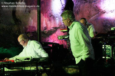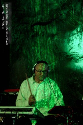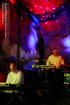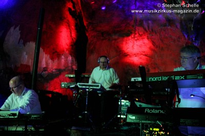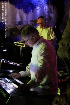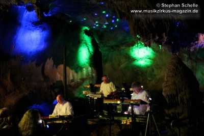 In ihren Stücken wechselten Bas, Detlef und Mario immer wieder zwischen rhythmischen und sphärisch/hypnotischen Passagen, was eine ganz besondere Stimmung in der Grotte erzeugte. Wie schon bei Pyramid Peak, so waren die Besucher auch beim Auftritt von Broekhuis, Keller & Schönwälder wie von dieser Welt entrückt.