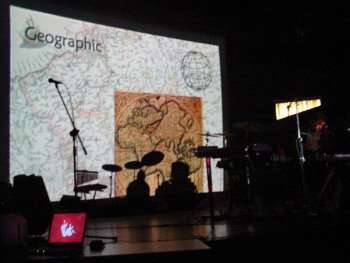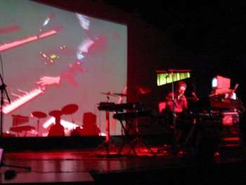 Auftritt durch eine visuelle Show. Neben Computergenerierten Fotos, die zu