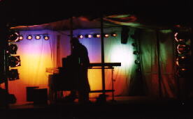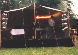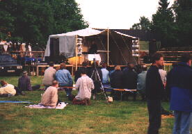 Strawe war eine behelfsmäßige, kleine Bühne aufgebaut, die mit Planen überdacht war.