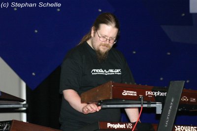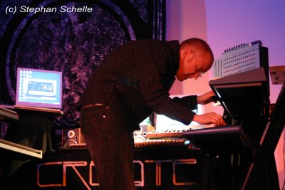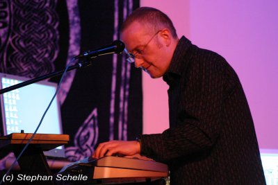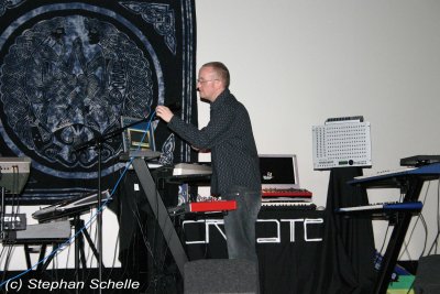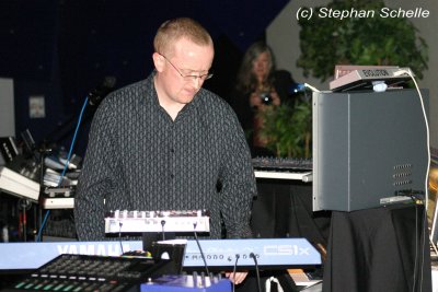 U-förmig aufgestellten Keyboardracks und seinen Computerprogrammen, dass ich