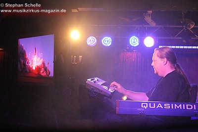 Die Keyboards waren mit einem schwarzen Tuch verhangen, sodass man ihm