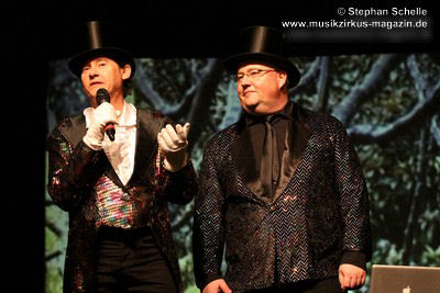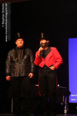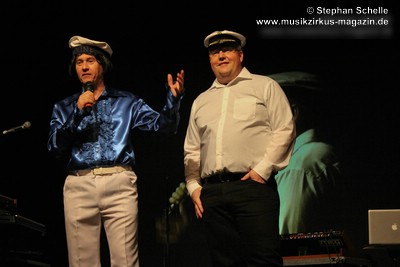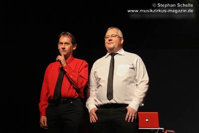 Frank Gerber und Hans-Hermann Hess, die beiden Hauptorganisatoren hatten sich zu den Ansagen wieder in Schale geschmissen. Dabei bezogen sie sich mit ihren Verkleidungen immer auf die anzusagenden Künstler. Das war wieder eine sehr schöne Idee. Daneben möchte ich aber auch die zahlreichen Helfer erwähnen, die entweder an der Kasse, am Licht, am Mischpult oder sonstige Aufgaben übernahmen. Ohne diese Helfer wäre ein solches Event nicht möglich.