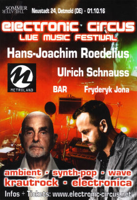 Neben dem aus Polen stammenden und seit gut 12 Jahren in Mainz lebenden Fryderyk Jona, der Düsseldorfer Formation BAR (Band am Rhein), dem belgischen Duo Metroland waren als Hauptacts am Abend der in London lebende deutsche Ulrich Schnauss und der Österreicher Hans-Joachim Roedelius in der musikalischen Arena zu sehen und zu hören. Die Unterscheide der Darbietungen waren in musikalischer Hinsicht dabei wieder sehr groß, so wie es auch das Programm eines Zirkus verspricht. Damit sind sich die Organisatoren treu geblieben.