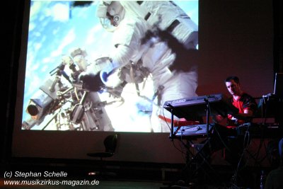 Computerbilder während er Melodielinien und Flächen live einspielte. Die