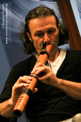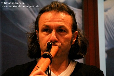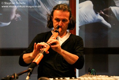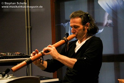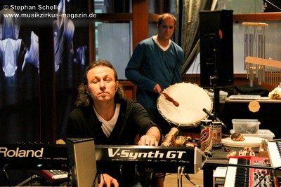Eric spielte neben seinen Keyboards ebenfalls akustische Instrumente wie eine indianische Flöte, die er aber über seine Synthies leitete. Das sorgte für einen sehr authentischen und teils ethnischen Sound. Mal waren bei den Stücken recht ethnische Klänge zu hören, dann spielte er wieder einige Melodien im Pianosound, so wie man es von seinen romantischen Solostücken her kennt. Eine tolle Zugabe an diesem Tag, die leider nur wenige Besucher mitbekamen.