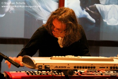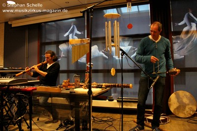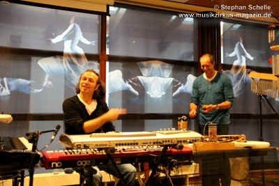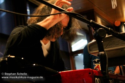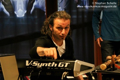 Sehr schön waren auch die Erklärungen von Eric zur Musik und der Spieltechnik bzw. der eingesetzten Sounds und Instrumente, die aus dem Auftritt eben diese intime Atmosphäre machten. Man hatte das Gefühl als wären hier Freunde zusammen gekommen um ein bisschen zu fachsimpeln.