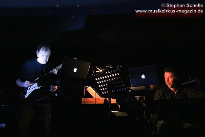 während Rhythmussequenzen und Synthiespuren aus dem Rechner kamen. Das