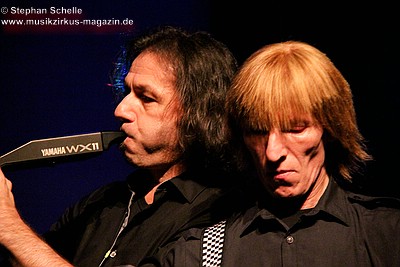 Heijden auf die Bühne, der ihn an seinem Windcontroller, einem