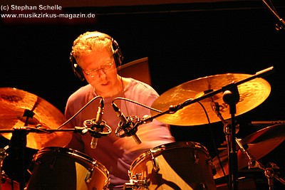 Schlagzeug und begann zunächst sehr akzentuiert die Becken zu