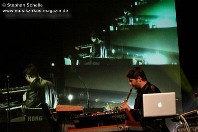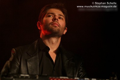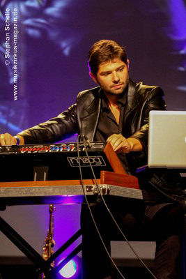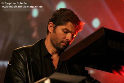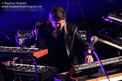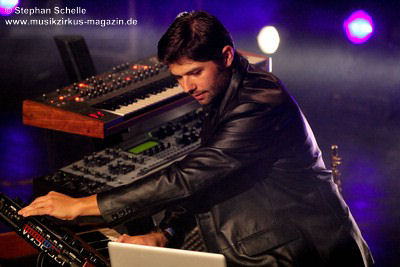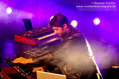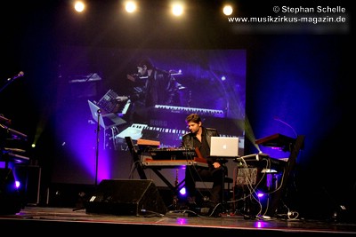 Freunde der traditionellen Elektronikmusik kamen beim Opener dieses Festivals voll und ganz auf ihre Kosten. Der diplomierte (an der Johannes Gutenberg Universität) Orchestermusiker Jona hatte von seinem Vater Janusz, der bei seinem Konzert einen kurzen Auftritt hatte, seine erste Klaus Schulze Platte und seinen ersten Synthesizer geschenkt bekommen. Damit begann seine Vorliebe für die elektronische Musik. Kein Wunder, das sich sein Stil an dem von Schulze ausrichtet. Bisher noch als Geheimtipp gehandelt, sollte er spätestens mit diesem Konzert für Schlagzeilen sorgen, denn nicht nur seine bisher fünf erschienenen CDs („Warm Sequencing“ ist gerade erst herausgekommen), sondern auch der Liveauftritt in Detmold, sein zweiter als Solokünstler, waren von außerordentlicher Güte.
