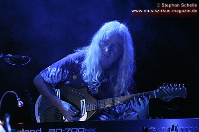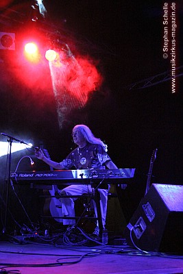 immer wieder zwischen Keyboard und Gitarren, während Christian sehr