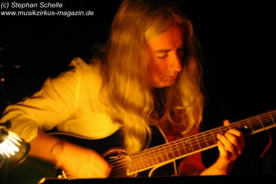 Welt entrückt. Mal spielte er auf seiner Les Paul herrliche Soli, dann