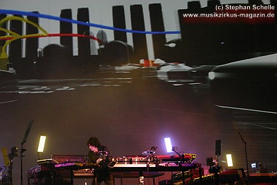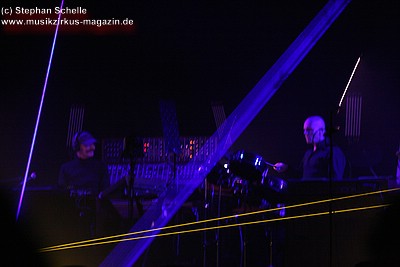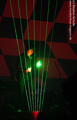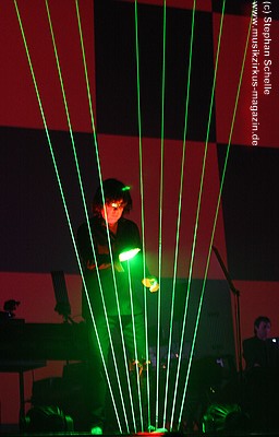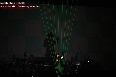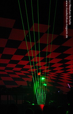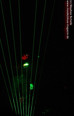 und den Musikern, die unter den farbigen Laserwolken agierten (oft