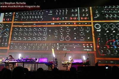 Bühne nutzten kein neues Equipment, vielmehr stammten die Synthies,