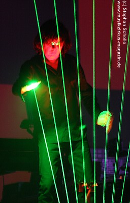 von einem kreisförmigen Laser umgeben, spielte er dann die Melodielinie