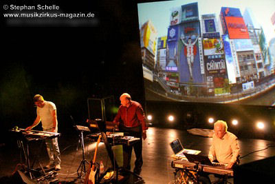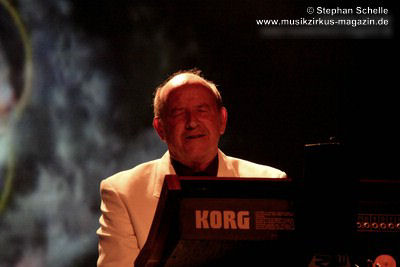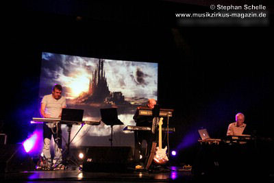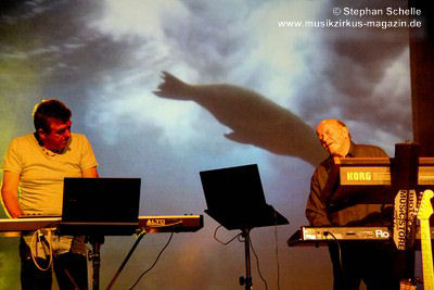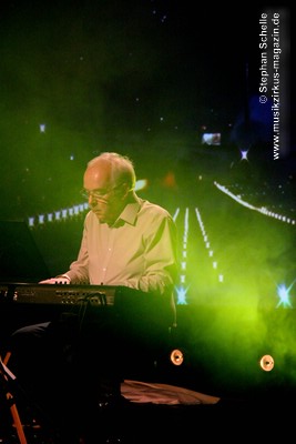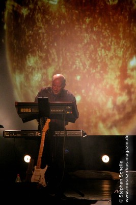 Es folgten ein hymnisch, rhythmisches „Silverbird“, ein schwebendes „Aquarelle“ (die Unterwasseraufnahmen auf der Leinwand passten perfekt dazu), das Stück „Analog“, dessen Sequenzer orientierter Mittelteil von einem Kirchenorgel-Intro und -Outro umrahmt war sowie mit „Dragon Song“ ein brandneuer Titel, der bisher unveröffentlicht ist.
