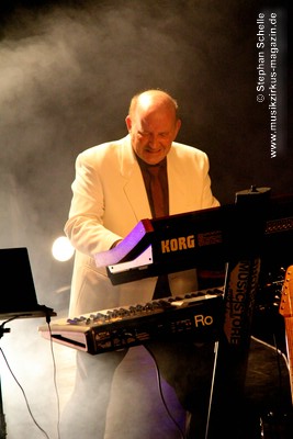 Beim zweiten Stück ging er dann weit in die Vergangenheit zurück. „Wavestar“ vom Wavestar-Debütalbum „Mind Journey“ stammt aus dem Jahr 1984 und hat, so konnte man an diesem Abend deutlich hören, nichts von seiner Faszination verloren. Sequenzerrhythmen bildeten den treibenden Grundstock, auf den John in seiner unnachahmlichen Art eingängige und unter die Haut gehende Melodien legte.