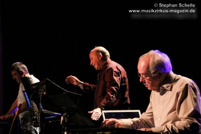 Dann wurde es ein wenig melancholisch, denn das Stück „Evolution“ von John’s gleichnamigem 89’er Album widmete er seinem drei Jahre zuvor verstorbenen Partner Jack. Jack bat ihn seinerzeit darum das Ende von „Evolution“ auf seiner Beerdigung zu spielen. John konnte das damals nicht, dafür holte er es an diesem Abend nach. John, Paul und Michael spielten eine unter die Haut gehende Version dieses Stückes, das vom Track „I.F.O.“ (vom gleichen Album) eingeleitet wurde. Hier war Gänsehaut garantiert. Der Dank des Publikums waren „Standing Ovations“.
